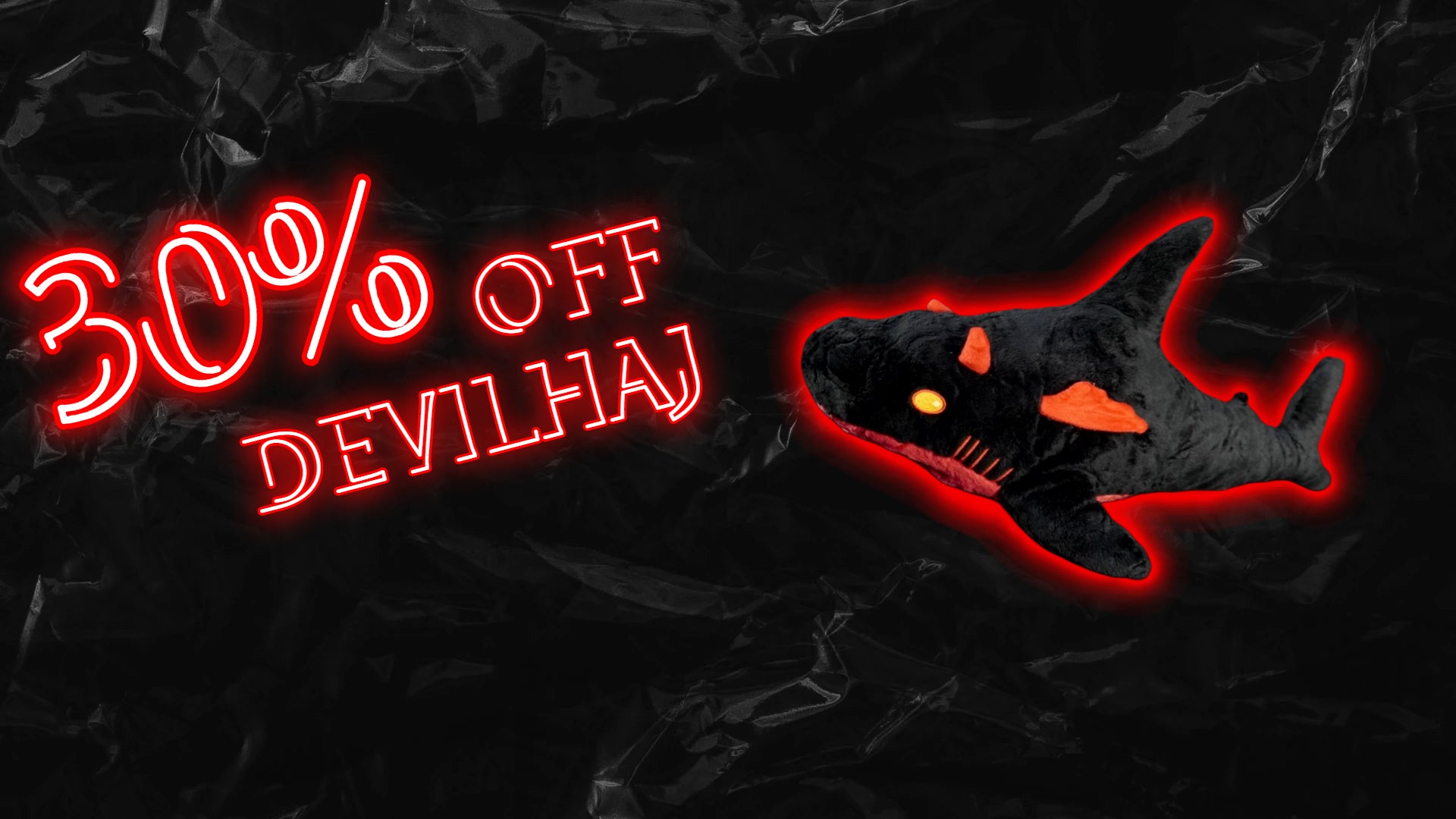 Soft devilhaj plushie, 55cm(21.6in) long. black and red design with cute wings and devil horns. Perfect for cuddling, and keeping your bed safe :3
