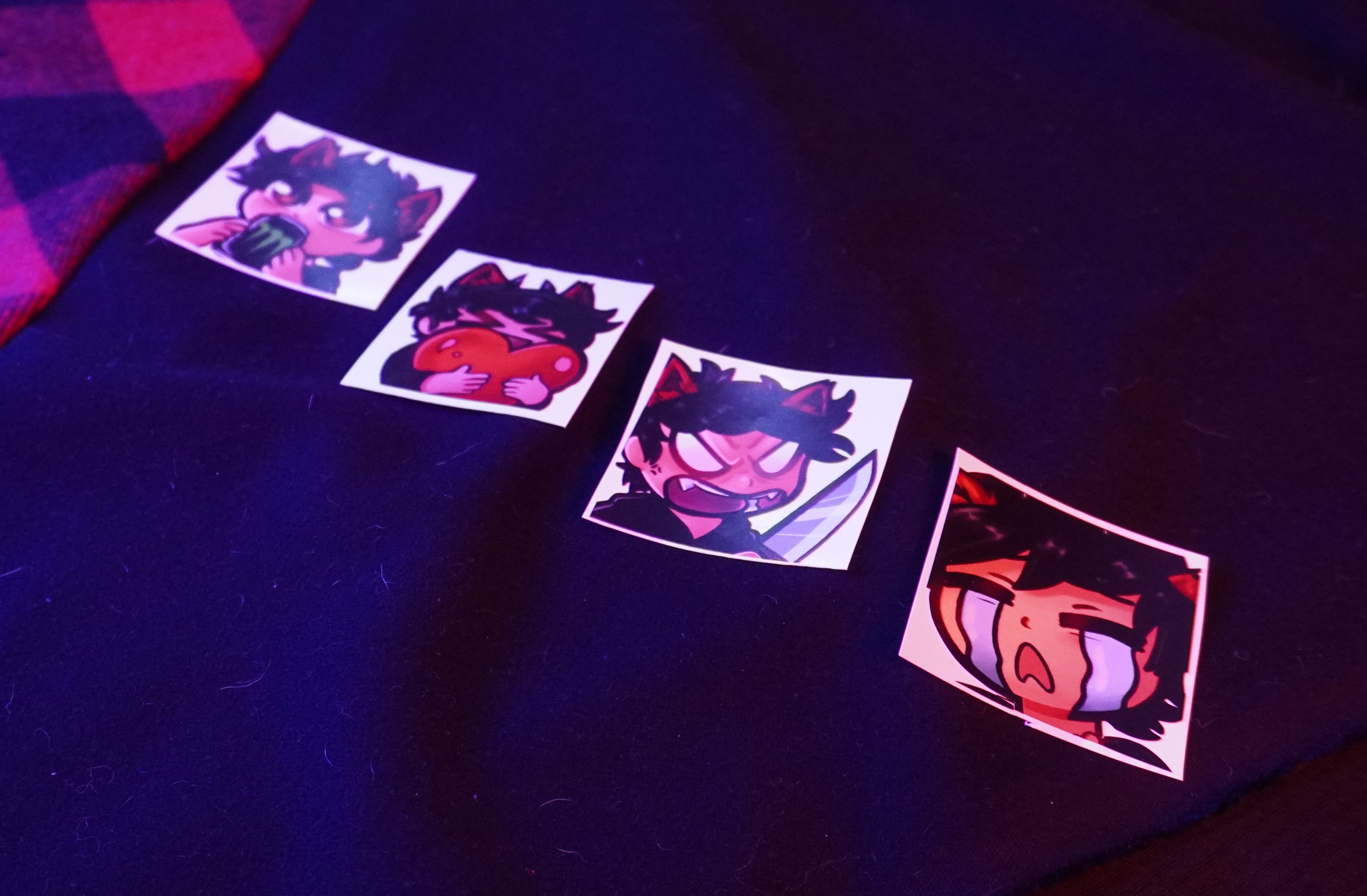 Pack of 4, 2.4 inch stickers. 4 separate emotes including Willzsip, Willzheard, Willzangy, and Willzcry.